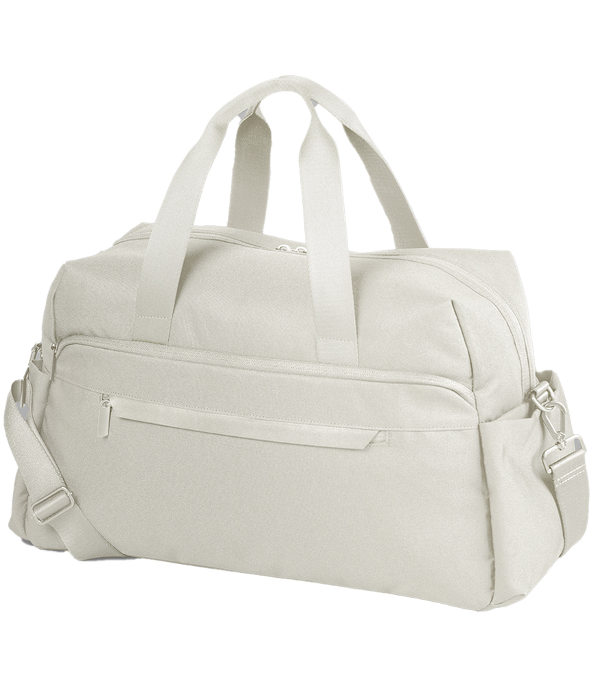 100% recycled 600D polyester. Overhead cabin compatible, fits most airlines.Premium finish lining.Premium webbing carry handles.Detachable adjustable shoulder strap.Main zip compartment.Three internal slip pockets.Two large end slip pockets.Front zip pocket with rain flap and internal slip pockets.Rear zip pocket doubles as a sleeve to slide over a suitcase handle.Tear out label.Capacity 28 litres.