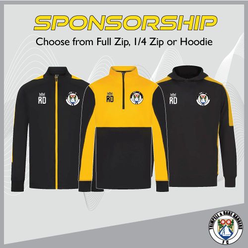 Sponsorship opportunities are available Simply choose your preferred tracksuit top, upload your logo to be printed on the back, and select the team you wish to sponsor.